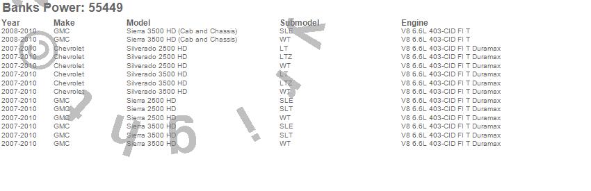 Below is an abreviated list of applications for the Banks Brake Exhaust Brake.