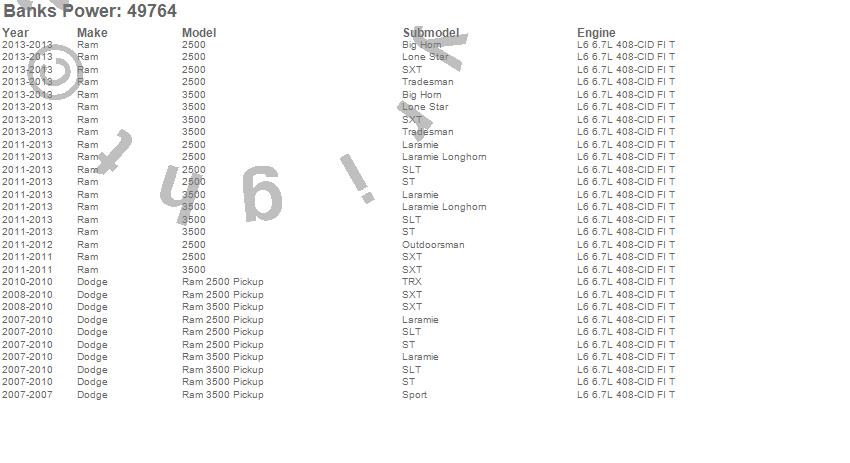 Below is an abreviated list of applications for the Monster Diesel Duals Exhaust.