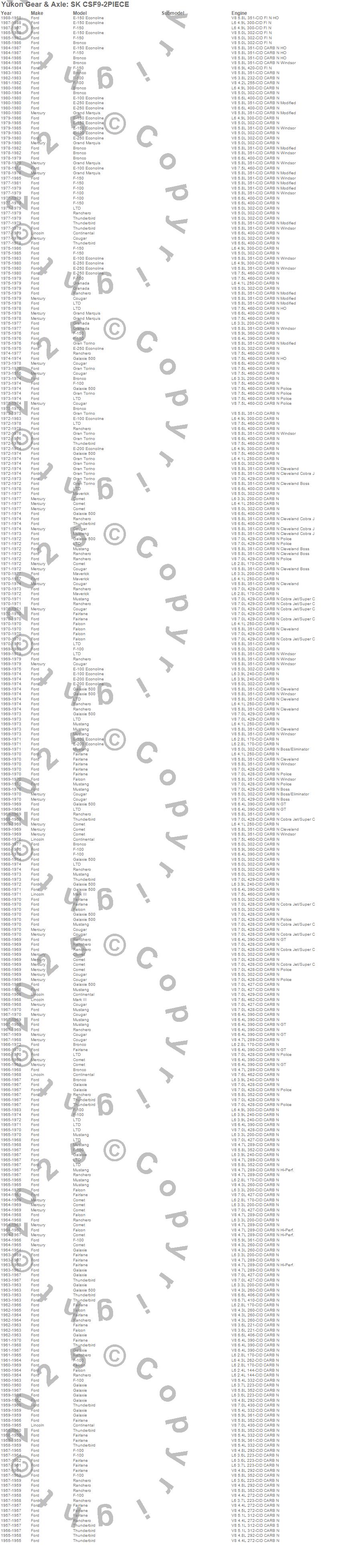 Bronco, Continental, Cougar, E-150 Econoline, E-150 Econoline Club Wagon, F-100, F-150, Fairlane, Falcon, Falcon Sedan Delivery, Galaxie, Galaxie 500, Gran Torino, Granada, LTD, LTD II, Mark III, Mustang, Ranchero, Thunderbird more…