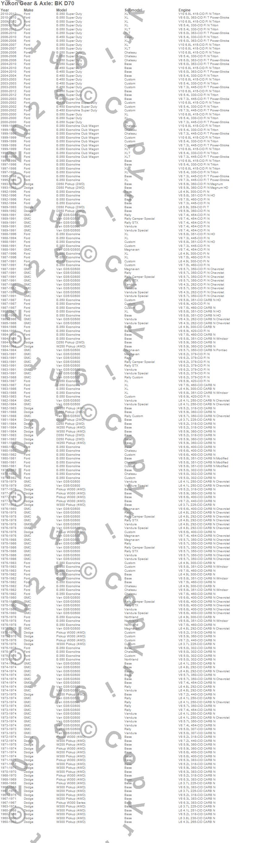 Below is an abreviated list of applications for the Differential Bearing Kit.