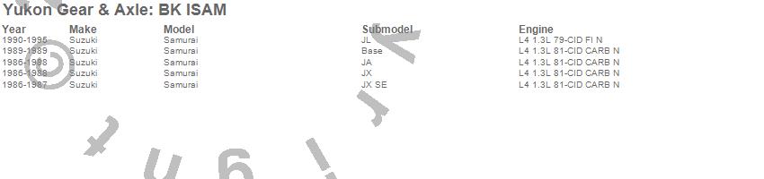Yukon Gear & Axle Differential Bearing Kit # BK ISAM - Front/Rear - Incl. Timken Carrier Bearings/Races - Pinion Bearings/Races/Pinion Seal/Crush Sleeve/Oil - For Use w/Samurai Differential