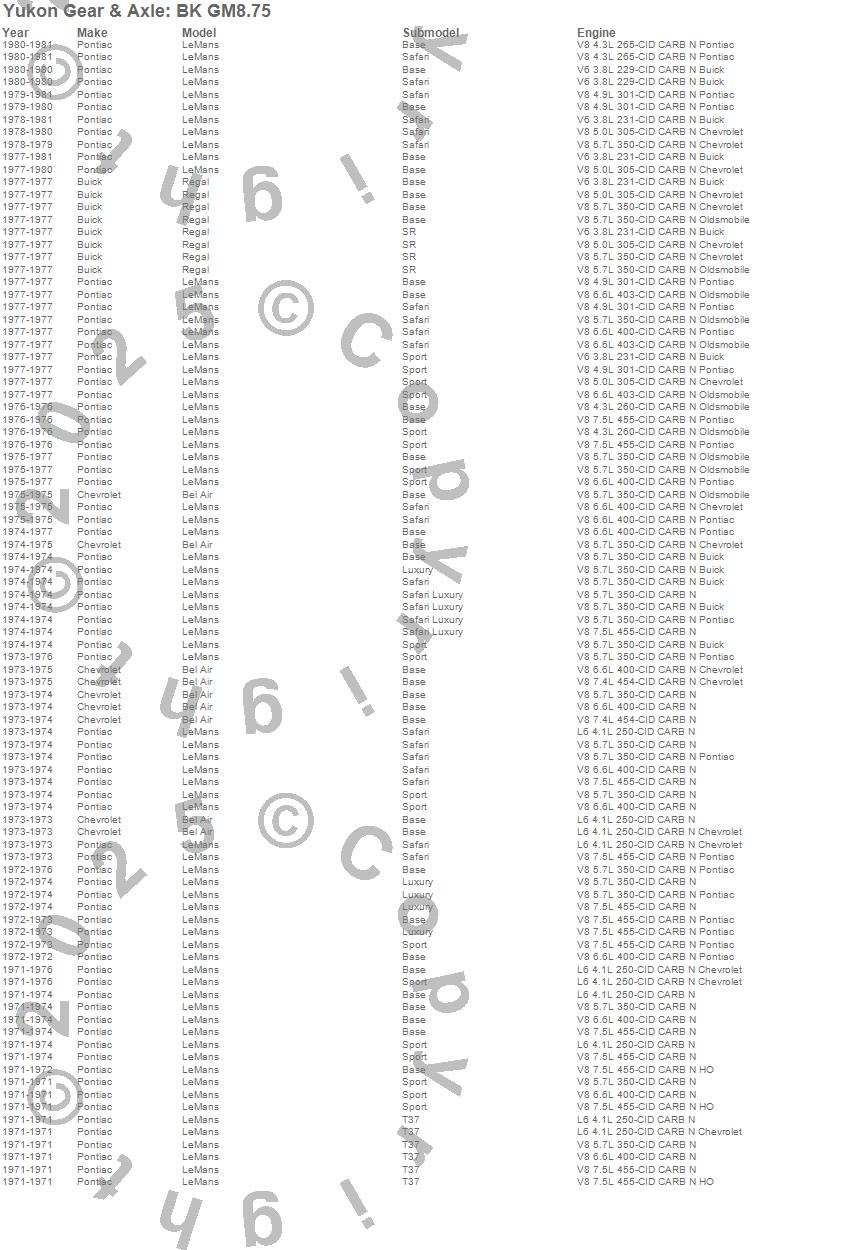 Below is an abreviated list of applications for the Differential Bearing Kit.