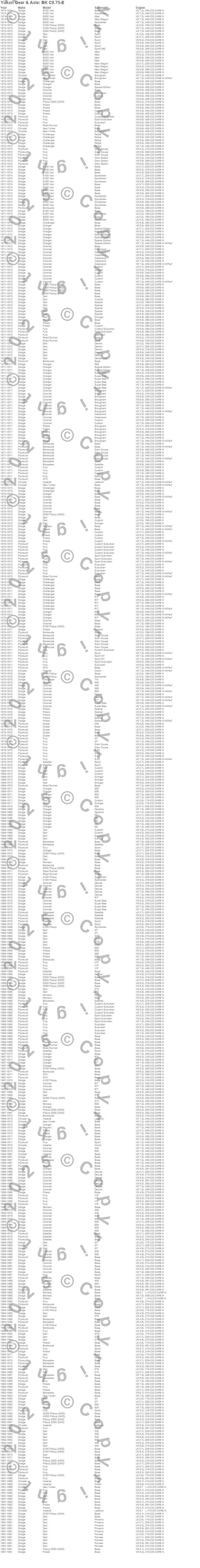 Barracuda, Belvedere, Belvedere II, Challenger, Charger, Coronet, Dart, Duster, Fury, GTX, Imperial, Monaco, New Yorker, Polara, Road Runner, Satellite, Chrysler, Dodge, Plymouth, 1973 more…
