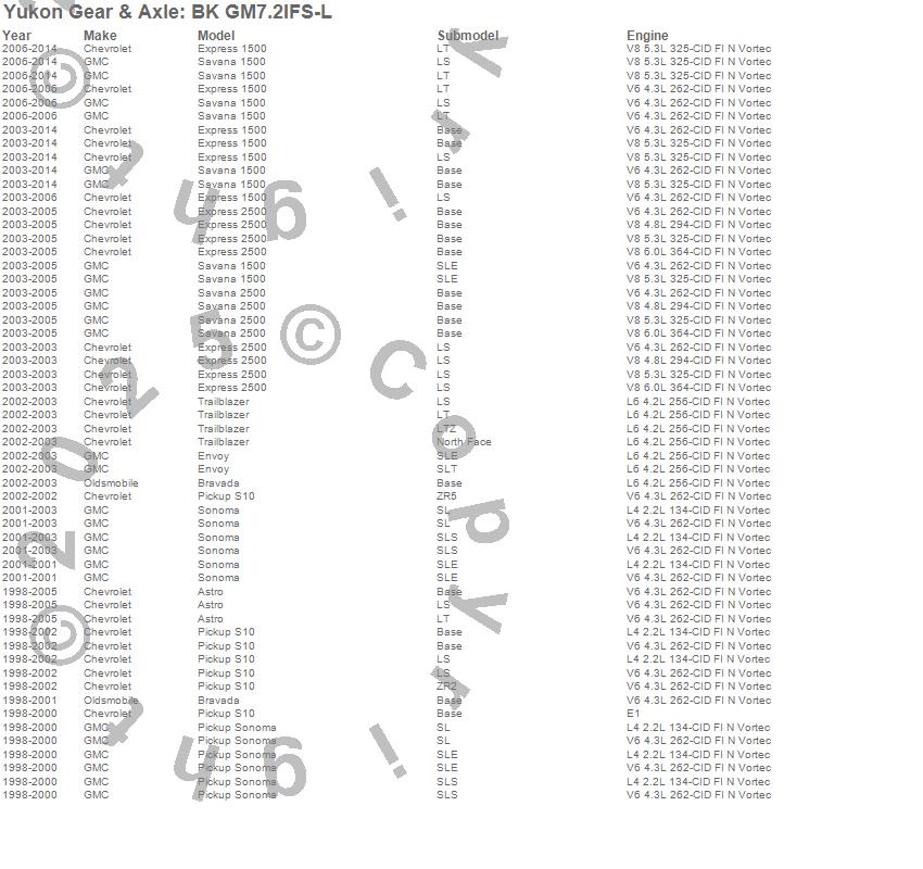 Below is an abreviated list of applications for the Differential Bearing Kit.
