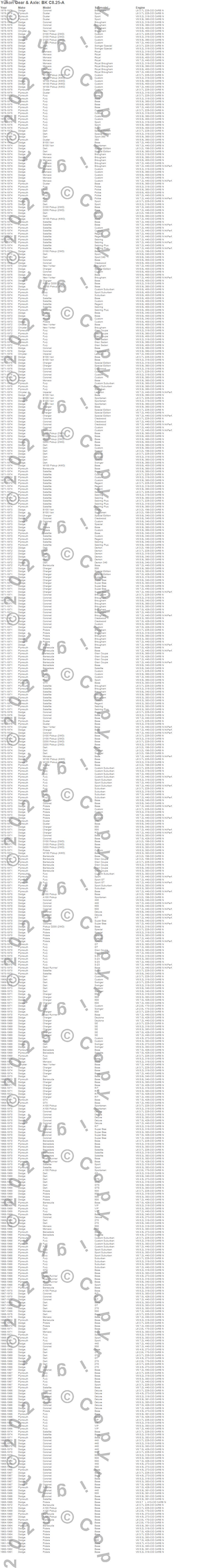 Barracuda, Belvedere, Charger, Coronet, Dart, Duster, Fury, GTX, Imperial, New Yorker, Polara, Road Runner, Satellite, Chrysler, Dodge, Plymouth, 1976, 1975, 1974, 1973 more…
