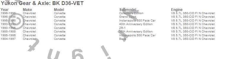 Below is an abreviated list of applications for the Differential Bearing Kit.