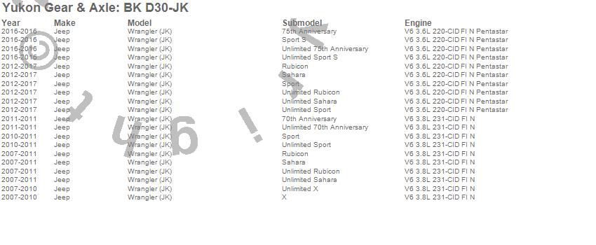 Below is an abreviated list of applications for the Differential Bearing Kit.
