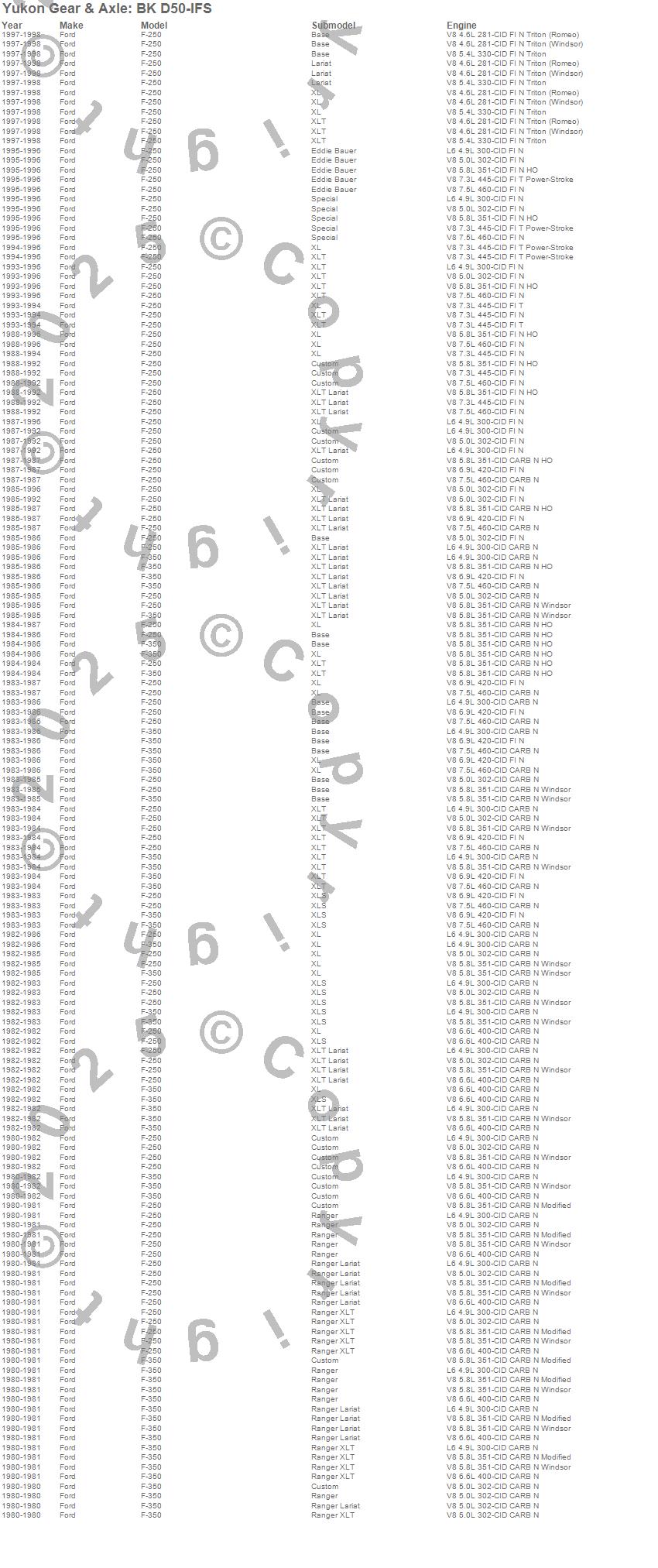 Below is an abreviated list of applications for the Differential Bearing Kit.