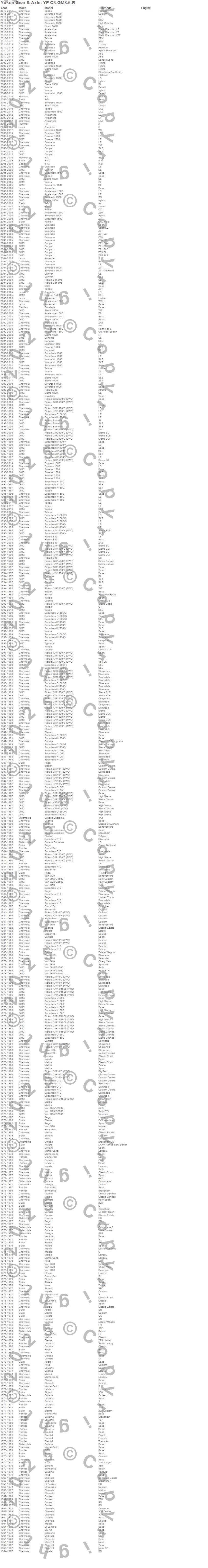 Avalanche, Bel Air, Biscayne, Blazer, Blazer K5, C15/C1500, C1500, C1500 Pickup, C1500 Suburban, Camaro, Canyon, Caprice, Chevelle, Chevy II, Colorado, El Camino, Envoy, Escalade, Escalade ESV, Escalade EXT more...