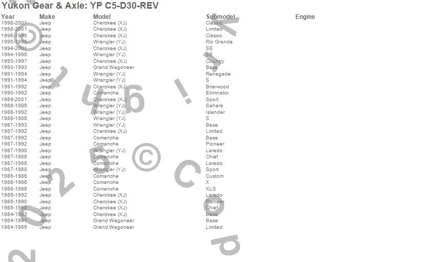 Cherokee (XJ), Comanche, Grand Wagoneer, Wrangler (YJ), Jeep, 2001, 2000, 1999, 1998, 1997, 1996, 1995, 1994, 1993, 1992, 1991, 1990, 1989, 1988, 1987 more…