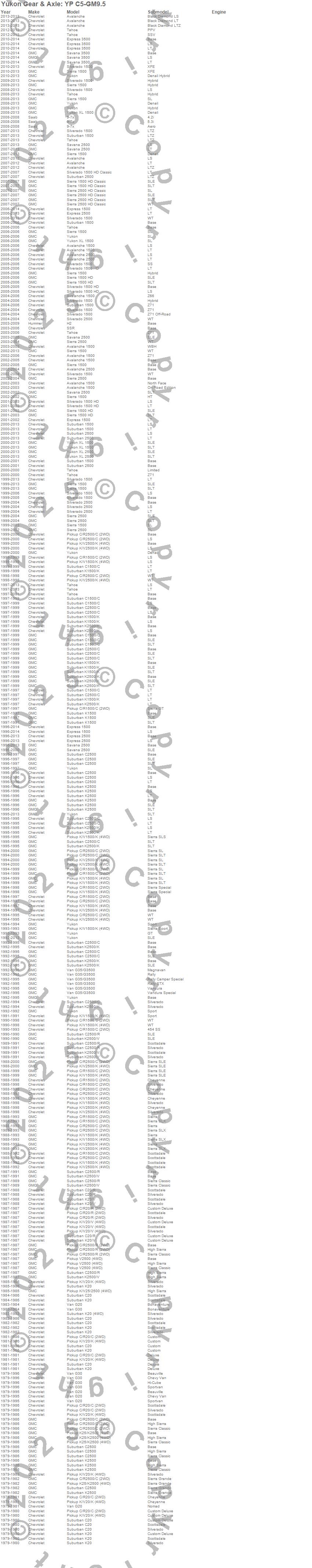Avalanche, Avalanche 1500, Avalanche 2500, C1500, C1500 Pickup, C1500 Suburban, C20 Pickup, C20 Suburban, C2500 Pickup, C2500 Suburban, Express 1500, Express 2500, G20 Van, G30 Van, G35/G3500 Van, H2, K1500, K1500 Pickup, K1500 Suburban, K20 Pickup more…