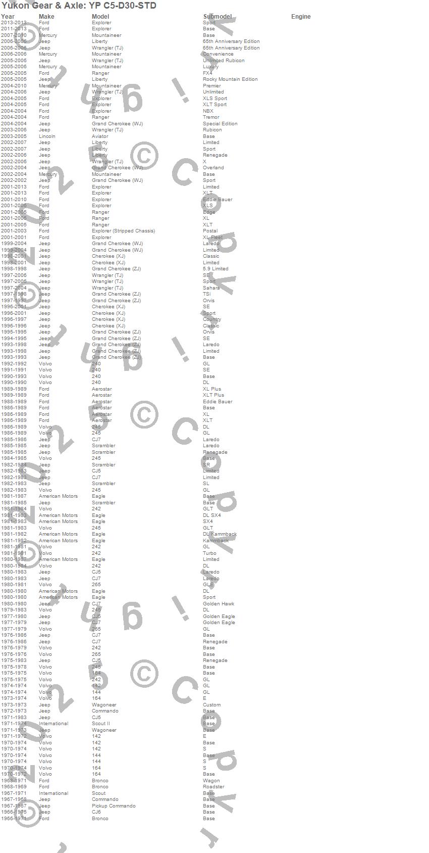 142, 144, 164, 240, 242, 245, 265, Aerostar, Aviator, Bronco, Cherokee (XJ), CJ5, CJ6, CJ6A, CJ7, Comanche, Commando, Compass, Eagle, Explorer more…