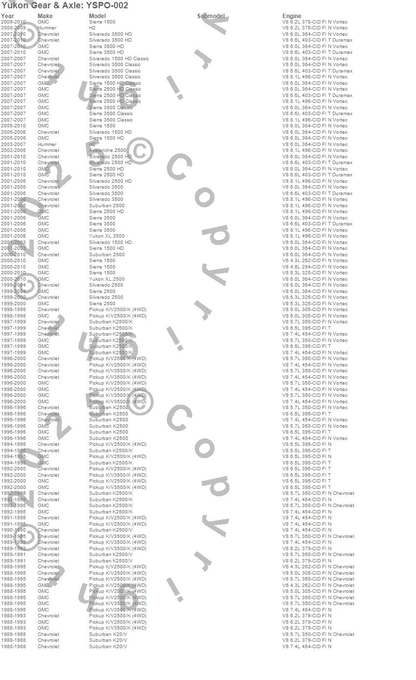 Avalanche 2500, H2, K2500 Pickup, K2500 Suburban, K2500 Suburban (Canadian), K3500 Pickup, Sierra 1500, Sierra 1500 HD, Sierra 1500 HD Classic, Sierra 2500 HD, Sierra 2500 HD Classic, Sierra 3500, Sierra 3500 HD, Silverado 1500, Silverado 1500 HD, Silverado 1500 HD Classic, Silverado 2500, Silverado 2500 HD, Silverado 2500 HD Classic, Silverado 3500 more…