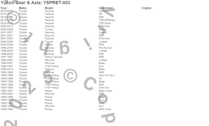 Below is an abreviated list of applications for the Pinion Bearing Retainers.