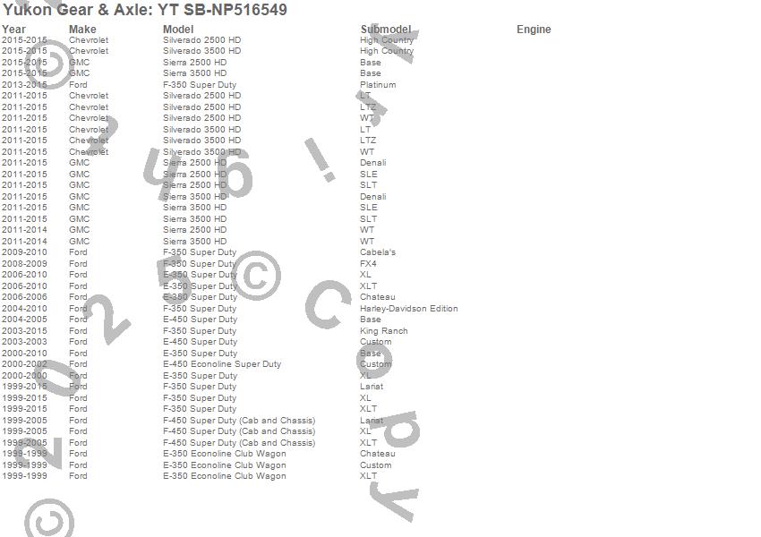 Below is an abreviated list of applications for the Pinion Set-up Bearing.
