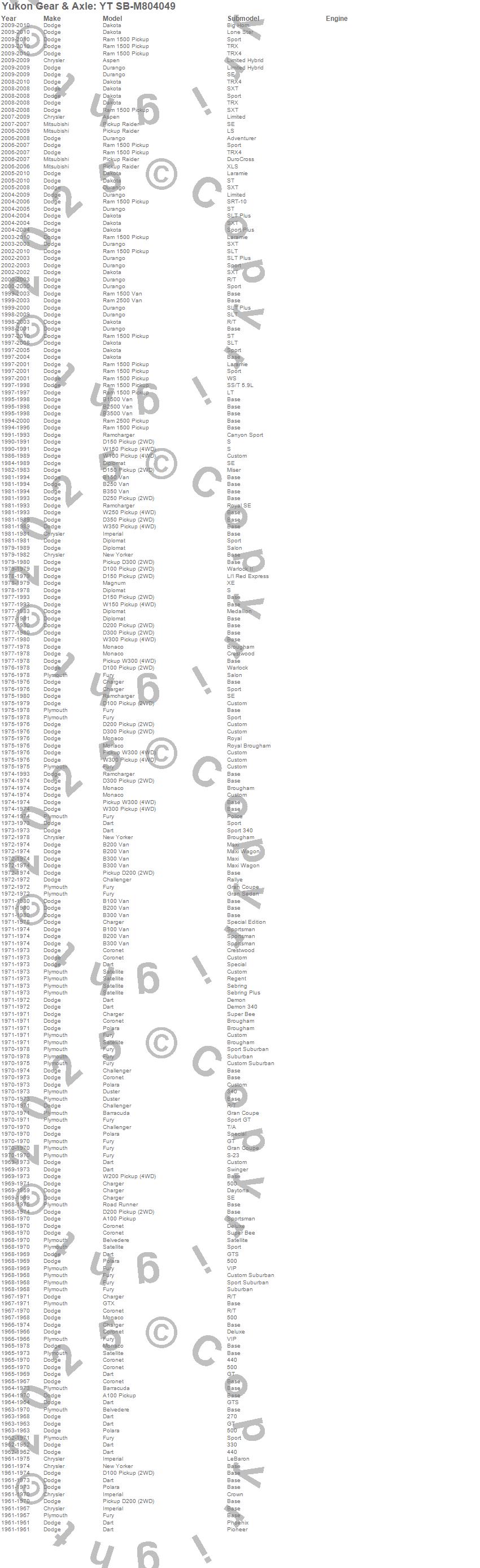 Below is an abreviated list of applications for the Pinion Set-up Bearing.