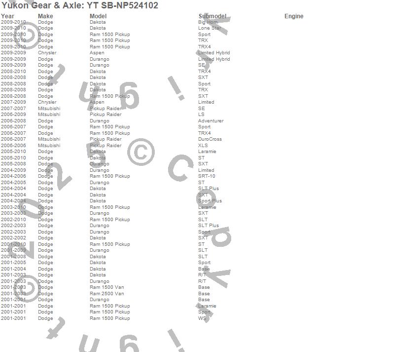 Below is an abreviated list of applications for the Pinion Set-up Bearing.
