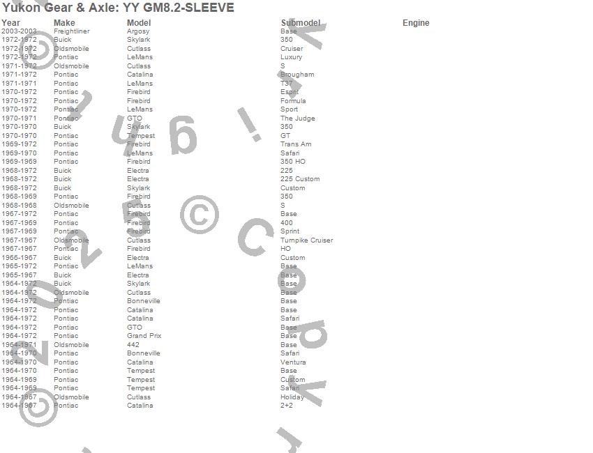 Below is an abreviated list of applications for the Pinion Yoke Adapter Sleeve.