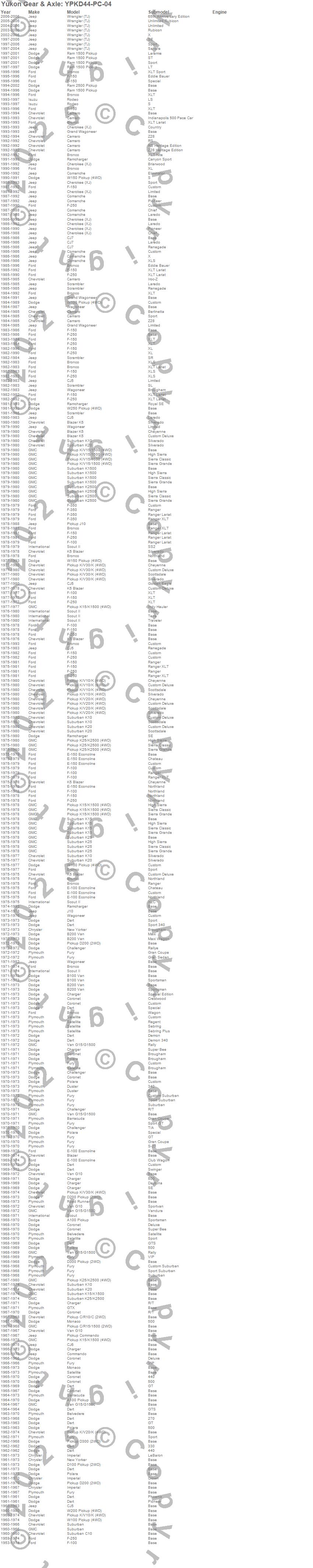 C10 Pickup, C15/C1500, Camaro, Cherokee (SJ), Cherokee (XJ), CJ5, CJ5A, CJ6, CJ6A, CJ7, Comanche, Commando, E-100 Econoline, E-100 Econoline Club Wagon, E-150 Econoline, E-150 Econoline Club Wagon, F Series, F-100, F-150, G10 Van more…