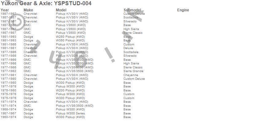 Below is an abreviated list of applications for the Steering Knuckle Stud.