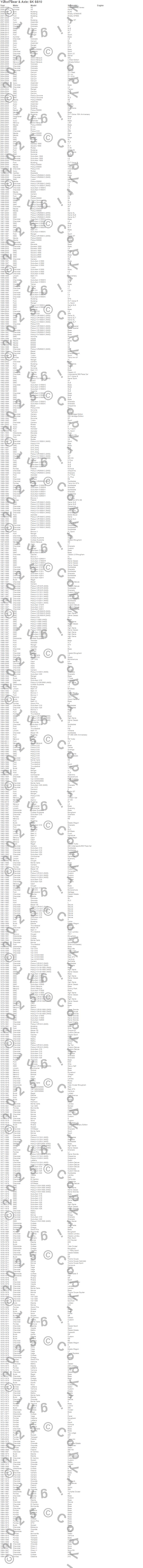 Astro, B3000, B4000, Bel Air, Biscayne, Blazer, Blazer K5, Bobcat, Bonneville, Bronco II, C15/C1500, C1500, C1500 Pickup, Camaro, Canyon, Capri, Caprice, Catalina, Chevelle, Chevy II more…