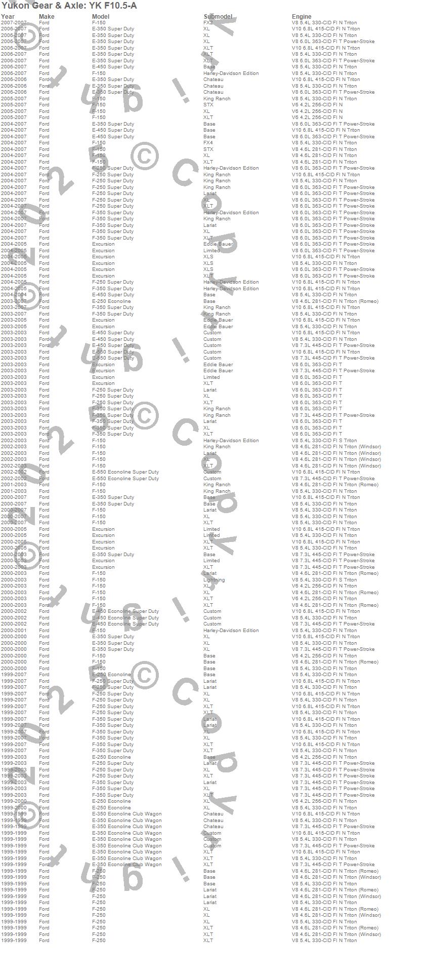 E-250 Econoline, E-250 Super Duty, E-350 Econoline Club Wagon, E-350 Super Duty, E-450 Super Duty, E-550 Econoline Super Duty, E-550 Super Duty, Excursion, F-150, F-150 Heritage, F-250 Super Duty, F-350 Super Duty, Ford, 2007, 2006, 2005, 2004, 2003, 2002, 2001 more…