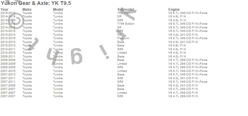 Below is an abreviated list of applications for the Yukon Differential Master Overhaul Kit.