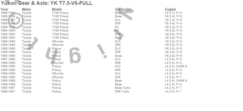 Below is an abreviated list of applications for the Yukon Differential Master Overhaul Kit.