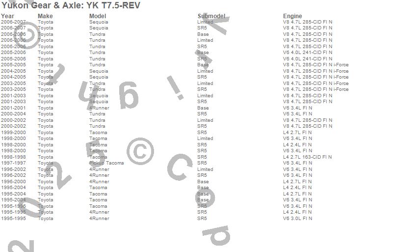 Below is an abreviated list of applications for the Yukon Differential Master Overhaul Kit.