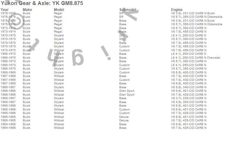 Below is an abreviated list of applications for the Yukon Differential Master Overhaul Kit.
