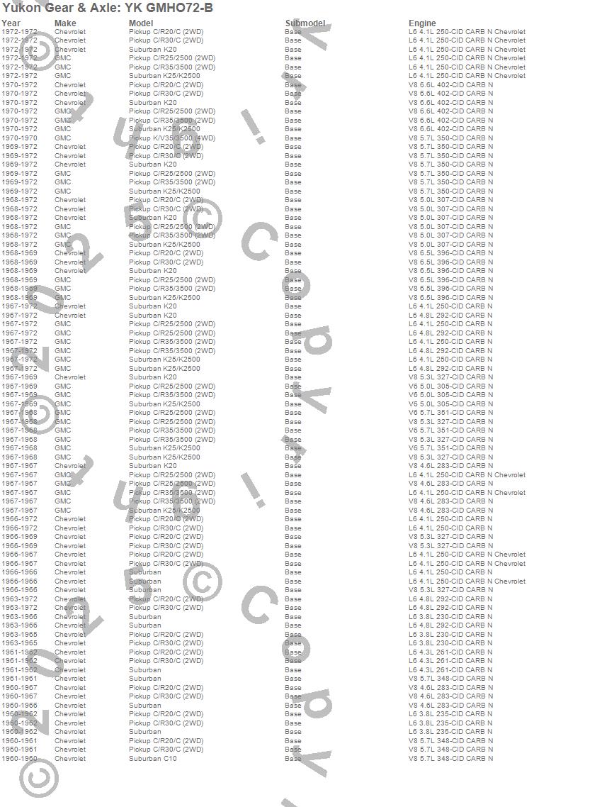 Below is an abreviated list of applications for the Yukon Differential Master Overhaul Kit.