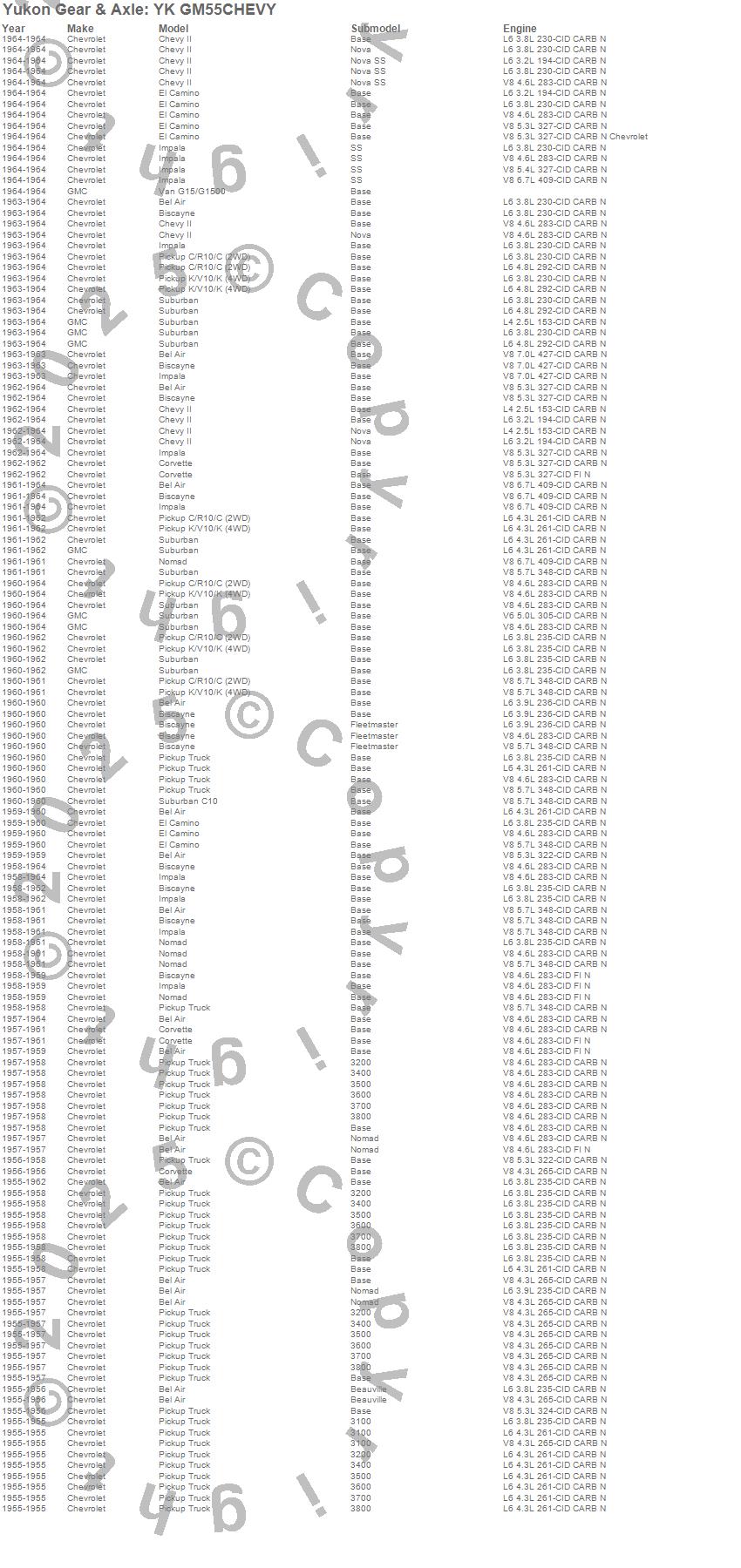 Below is an abreviated list of applications for the Yukon Differential Master Overhaul Kit.