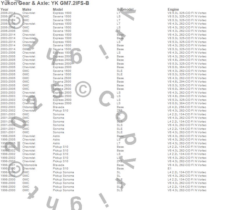 Below is an abreviated list of applications for the Yukon Differential Master Overhaul Kit.