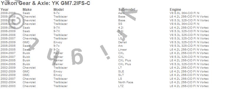 Below is an abreviated list of applications for the Yukon Differential Master Overhaul Kit.