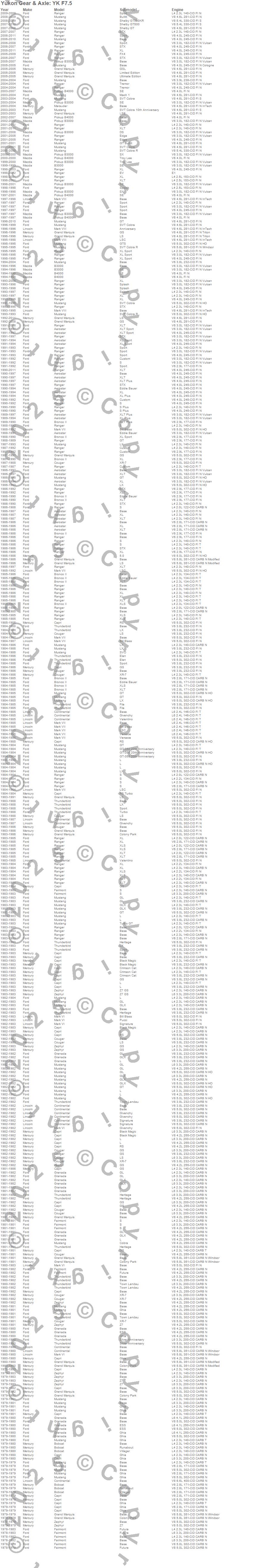 Below is an abreviated list of applications for the Yukon Differential Master Overhaul Kit.