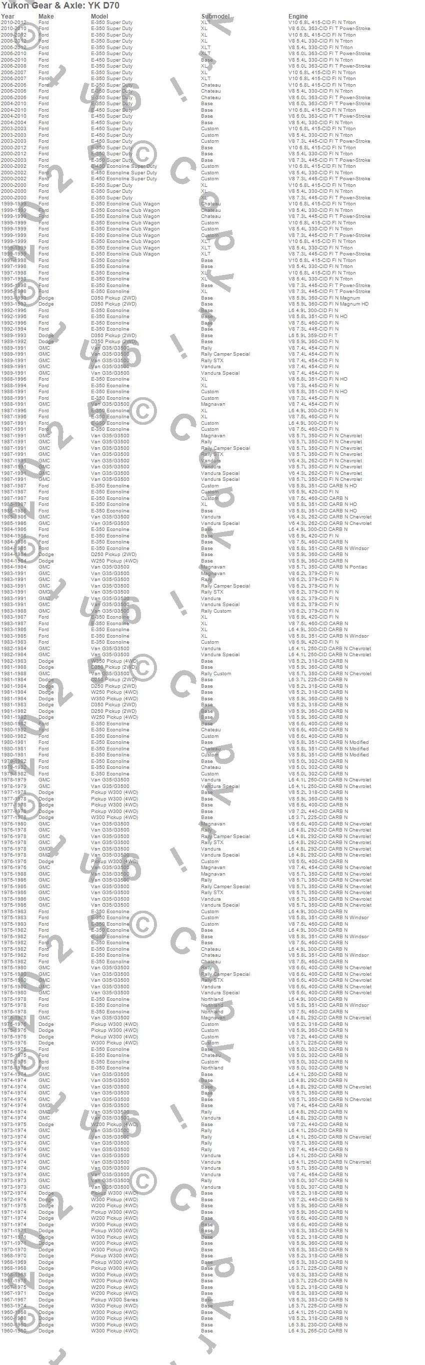 Below is an abreviated list of applications for the Yukon Differential Master Overhaul Kit.