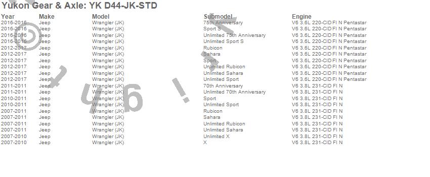 Below is an abreviated list of applications for the Yukon Differential Master Overhaul Kit.
