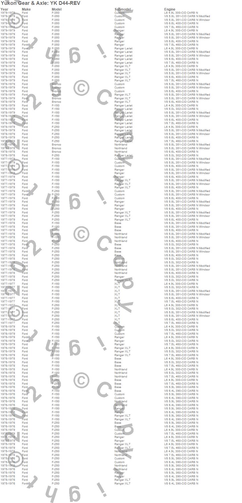 Below is an abreviated list of applications for the Yukon Differential Master Overhaul Kit.