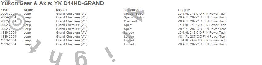 Below is an abreviated list of applications for the Yukon Differential Master Overhaul Kit.