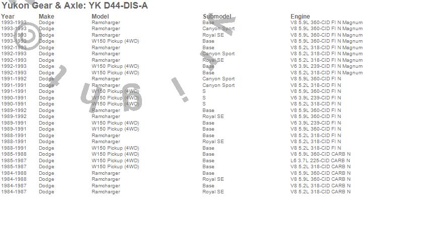 Below is an abreviated list of applications for the Yukon Differential Master Overhaul Kit.