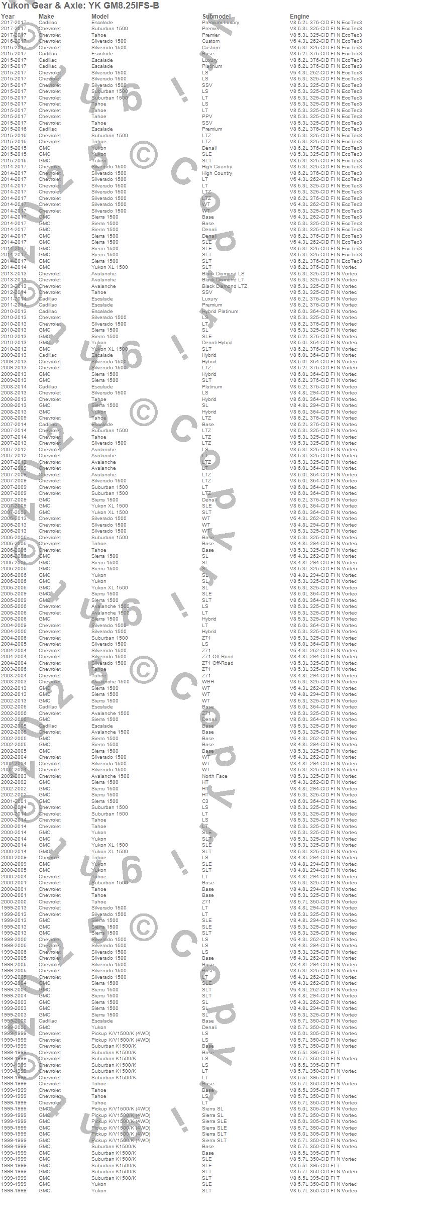 Below is an abreviated list of applications for the Yukon Differential Master Overhaul Kit.
