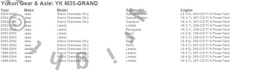 Below is an abreviated list of applications for the Yukon Differential Master Overhaul Kit.