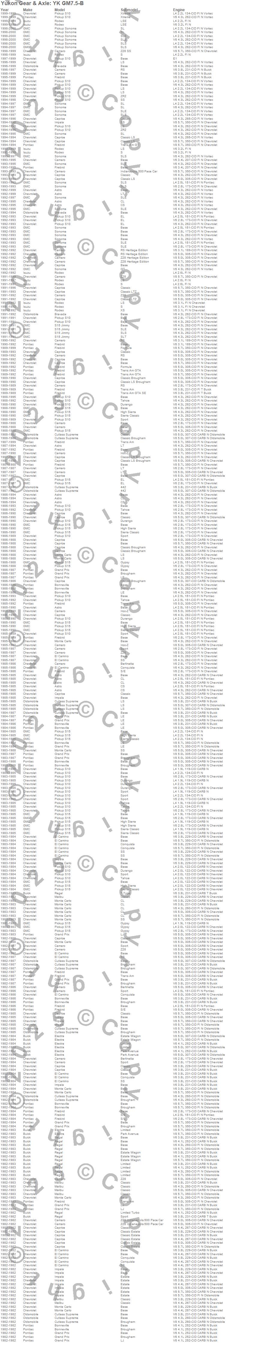 Below is an abreviated list of applications for the Yukon Differential Master Overhaul Kit.