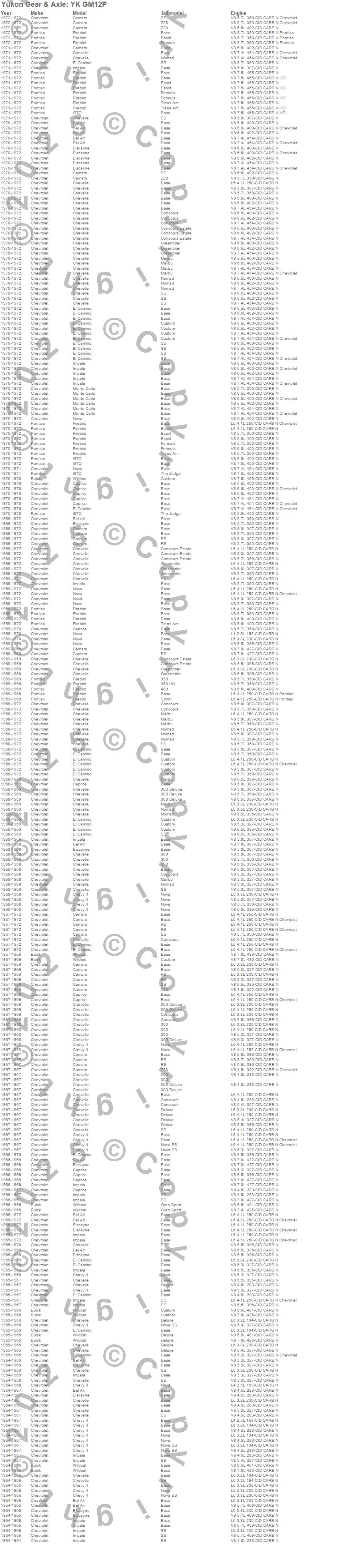 Below is an abreviated list of applications for the Yukon Differential Master Overhaul Kit.