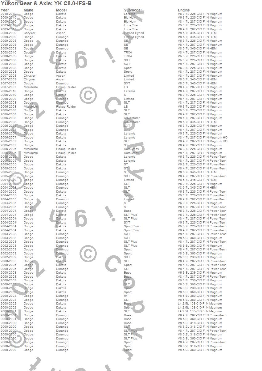 Below is an abreviated list of applications for the Yukon Differential Master Overhaul Kit.