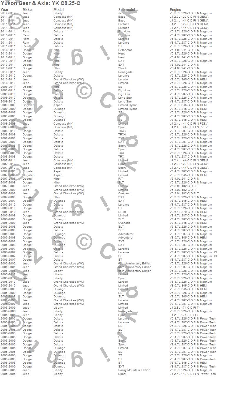 Below is an abreviated list of applications for the Yukon Differential Master Overhaul Kit.