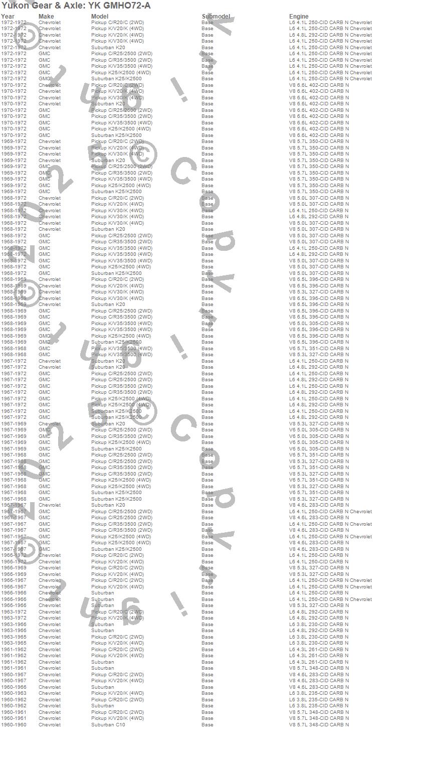 Below is an abreviated list of applications for the Yukon Differential Master Overhaul Kit.
