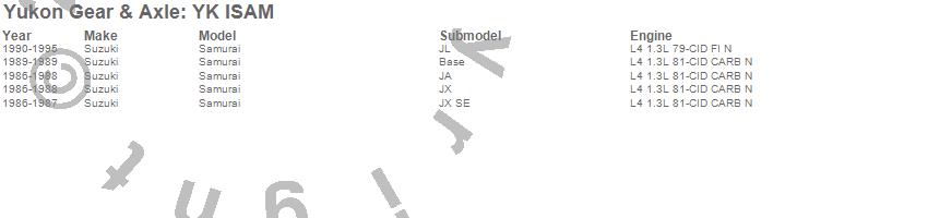 Below is an abreviated list of applications for the Yukon Differential Master Overhaul Kit.