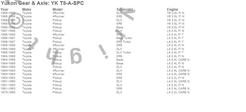 Below is an abreviated list of applications for the Yukon Differential Master Overhaul Kit.