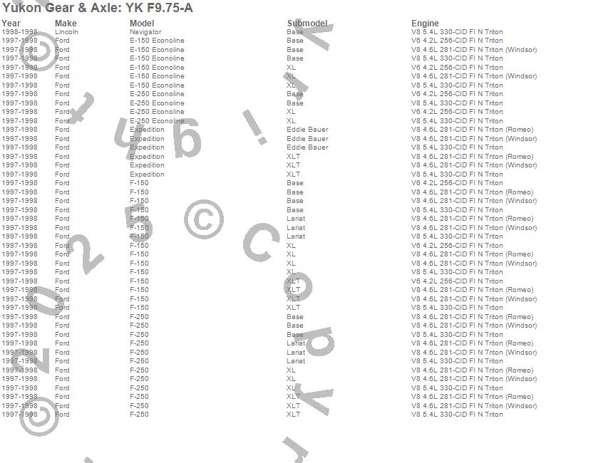 Below is an abreviated list of applications for the Yukon Differential Master Overhaul Kit.